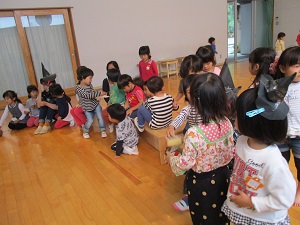 こちらは年長組の女の子が舞台裏で準備の真っ最中
