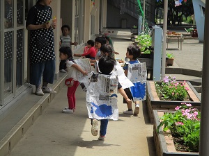 できあがったら嬉しくてさっそく園庭に飛び出していました