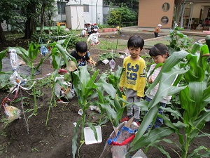 トウモロコシの葉っぱの中から不思議なものが出てきました