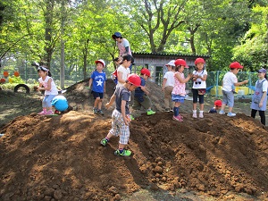 さっそく新しいつちの上に登ってみたり、ジャンプして