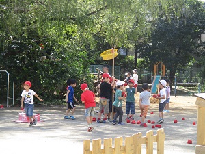 年長組は「リレーがしたい」と言っていろいろなやり方