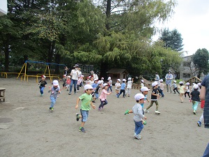 雨で延期になっていたプレイデー、今日はやっといいお天気になり年少組のこどもプレイデーを行うことができました