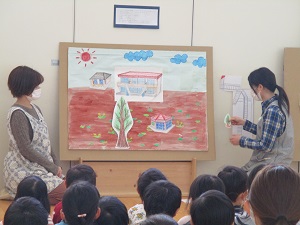 先生たちが作った大きな紙芝居を見ながらお話を聞きました