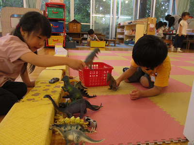 年中 いつもはあまり遊ぶことが少ないふたり、この日は意気投合して恐竜あそび