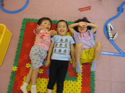 ■年中さんが作ったカーペットに寝転んで