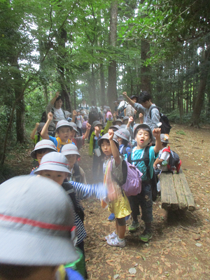 みんなで励ましあって登った高尾山。細い山道や根っこの多い道、急な坂道、つづく階段道なども仲間と励ましあって、登りきりました。